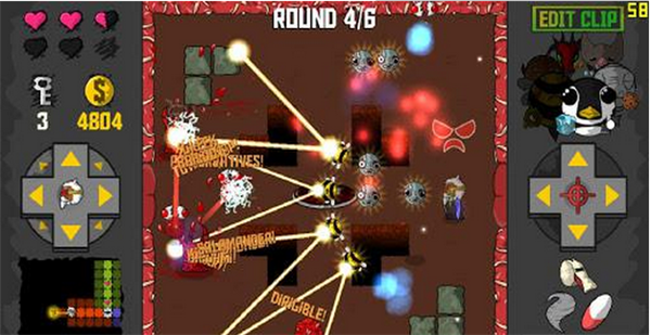 毛巾大戰(zhàn)2Towelfight 2: The Monocle of Destiny是一款雙搖桿射擊游戲,左側(cè)搖桿控制主角移動(dòng),右側(cè)搖桿控制射擊方向。但游戲的設(shè)定是本作最大的賣點(diǎn)。游戲主人公是一位白發(fā)老爺爺,某次穿越讓他來到一個(gè)奇幻的地牢世界。在這里,他佩戴的單片眼鏡竟釋放出無窮的魔力,能夠發(fā)射出帶有攻擊性的各種小動(dòng)物。于是和邪惡力量對抗的任務(wù)就交給了這位白發(fā)蒼蒼的老人。