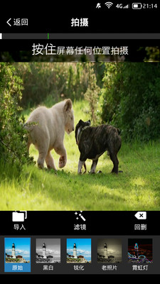 2)支持生日/下雪/小黃人/錄制等濾鏡效果,背景音樂增強(qiáng)視頻效果