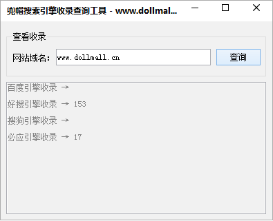 兜帽搜索引擎收錄查詢工具是一款便捷實用的網(wǎng)站收錄情況查詢工具,使用這款搜索引擎收錄查詢工具,用戶只需輸入想要查詢的網(wǎng)址,就能快速搜索出包括好搜、搜狗、必應(yīng)等多個搜索引擎的收錄數(shù)量,讓用戶輕松掌握網(wǎng)站的基本情況。