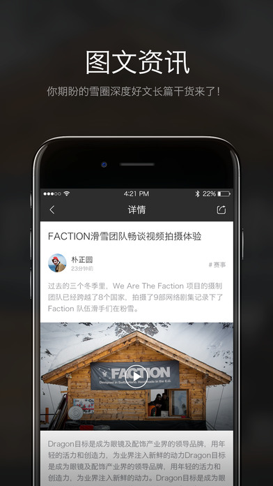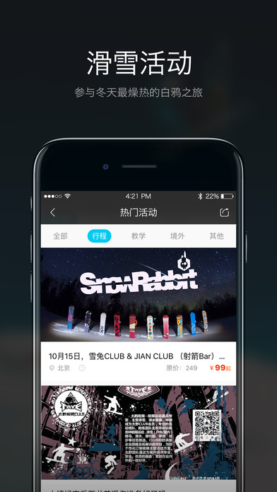 一站式解決雪友滑雪需求的多功能社區(qū)服務(wù)平臺(tái),AppStore強(qiáng)力推薦!滑雪達(dá)人各路大神5星好評(píng),全世界滑雪愛(ài)好者的的曬圖交友樂(lè)園。