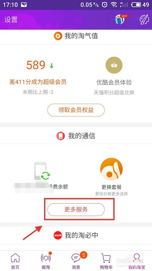可通過淘寶來免費領取,打開手機淘寶,點擊“我的”,在我的界面下往下滑動頁面,找到“我的通信”,點擊“更多服務”