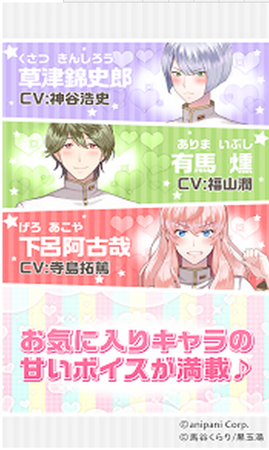 美男高校地球防衛(wèi)部love:本作是以今年1月原創(chuàng)新番《美男高校地球防衛(wèi)部LOVE!》為題材的戀愛系手游。游戲中設(shè)有豪華的聲優(yōu)陣容&角色插畫,還有原創(chuàng)劇情,玩家每進行一次選擇,都有可能會影響結(jié)局的劇情,玩家們可以在游戲中充分享受關(guān)于友情愛情的豐富劇情,可是相當(dāng)有趣的呢~