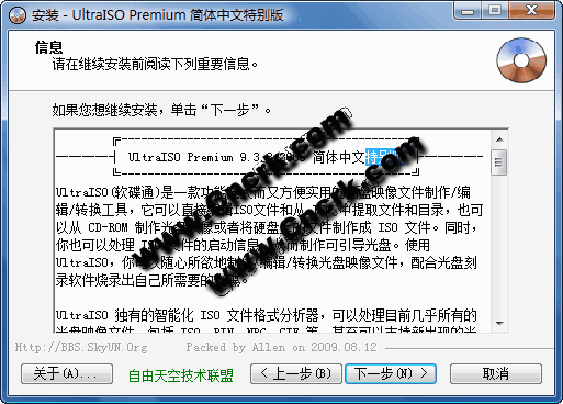 UltraISO PE V9.3.3.2685 簡體中文特別安裝版 UltraISO 是一款功能強大而又方便實用的光盤映像文件制作/編輯/格式轉換工具,它可以直接編輯光盤映像和從映像中直接提取文件,也可以從CD-ROM制作光盤映像或者將硬盤上的文件制作成ISO文件。同時,你也可以處理ISO文件的啟動信息,從而制作可引導光盤。使用UltraISO,你可以隨心所欲地制作/編輯光盤。