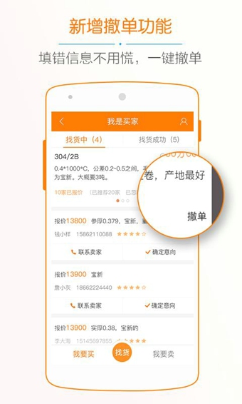 在這里,不銹鋼買家可以發(fā)布找貨信息,在短時間內(nèi)接收到賣家報價,并可電話聯(lián)系到賣家進行交易洽談和確認。賣家通過平臺即時推送的找貨信息,即可及時出價,抓住交易機會,對接到買家輕松實現(xiàn)出貨。