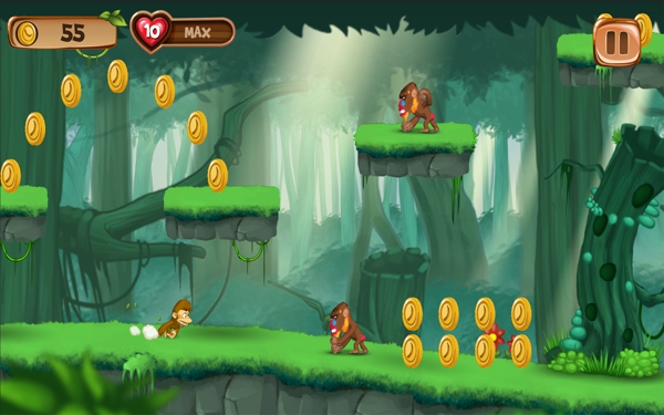 猴子快跑香蕉島是一款休閑益智類的跑酷小游戲。該游戲非常玩法非常簡單,玩家需要幫助小猴子在奔跑的途中,安全有效的躲避敵人和障礙物,努力收集到更多的香蕉。