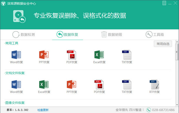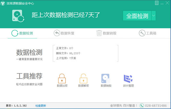 效率源數(shù)據(jù)安全中心是一款功能強大的數(shù)據(jù)恢復和數(shù)據(jù)安全軟件,這款軟件主要提供了硬盤檢測、數(shù)據(jù)恢復、數(shù)據(jù)銷毀、數(shù)據(jù)加密等功能,軟件可以運用一系列可恢復數(shù)據(jù)的算法,幫助用戶恢復誤刪除、誤格式化的數(shù)據(jù),同時可以優(yōu)化硬盤的讀取速度和性能,讓您的電腦變得更加“輕松”。