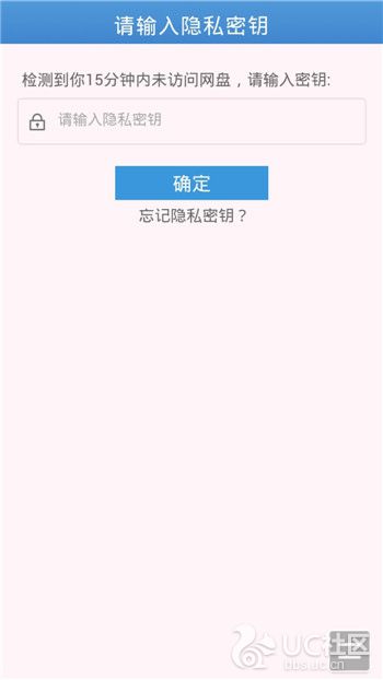 超過15分鐘沒有訪問網(wǎng)盤,再次進(jìn)入會(huì)提示輸入密鑰,私密性大大提高。