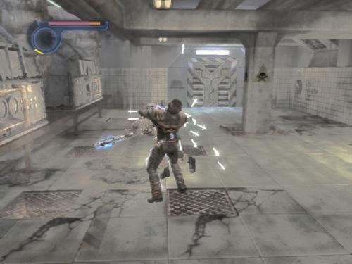 一開始消滅2個雜兵,之后去調查控制臺,打開門后前進,在最前面的左邊上樓,一路滅敵前進,后面基本沒什么難度了,途中雜兵眾多,當沒體力的時候要及時躲到安全的地方,按L2來恢復,最后打破控制臺打開門后MISSION COMPLETE。