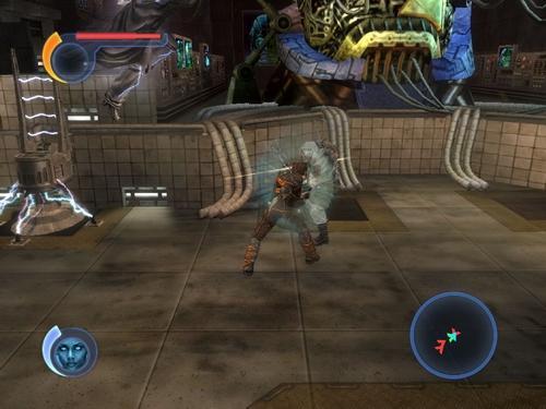 本關只要掌握好技巧是很簡單的,按住L1鎖定機器人后按攻擊鍵會瞬移到它背上,當爬在背上的時候機器人會自爆,基本在背上等6秒后跳到其他地方,把機器人全部弄爆炸后MISSION COMPLETE。