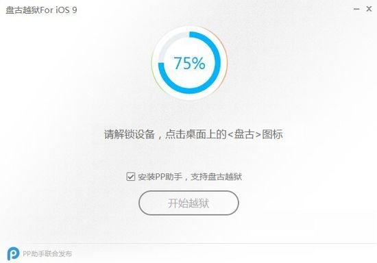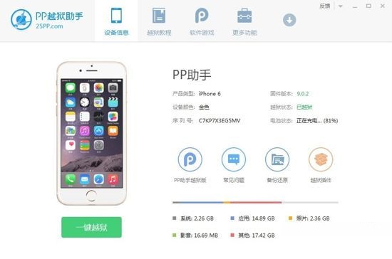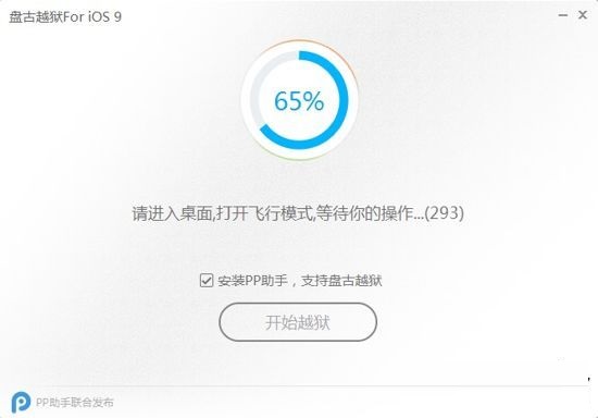 3.點(diǎn)擊PP越獄工具【開始越獄】按鈕