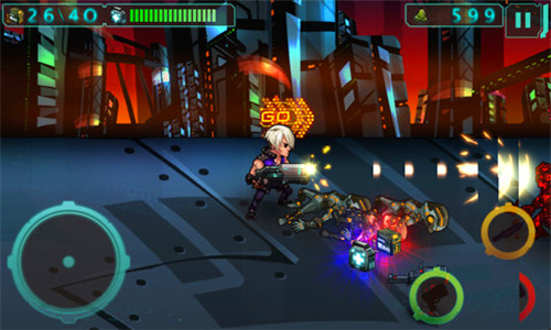 游戲通過虛擬按鍵實現(xiàn)操作,殺死敵人后會掉落急救包與彈藥補給,在道具消失之前拾取它們以幫助你在敵人老巢中有更出色的發(fā)揮。