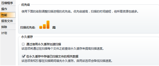 掃描計(jì)算機(jī)--完整的系統(tǒng)掃描--更多詳細(xì)信息--設(shè)置,默認(rèn)會(huì)建立永久緩存,如果勾選第一項(xiàng)的的可以加快以后的掃描速度。其他掃描方式也有這樣的設(shè)置。