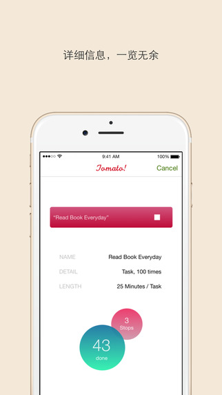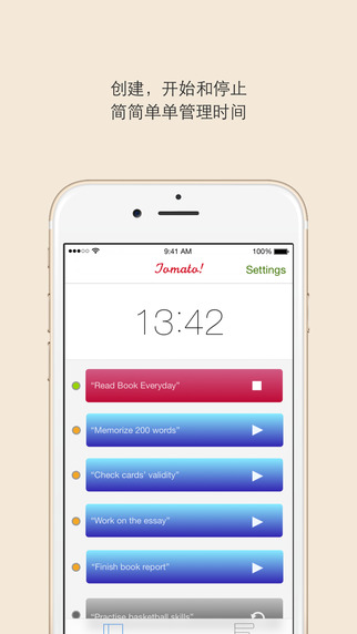 想要更好地管理您的時間、細(xì)化每天的任務(wù)并停止半途而廢嗎?有了Tomato!,您的iPhone就變成了一個高效的時間管理器,并能助您在一天之中完成更多。