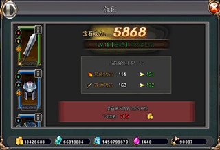 顯示角色的戰(zhàn)力、等級及裝備的基本情況,包括武器,衣服,鞋子,飾品和頭盔。