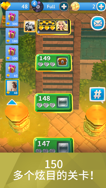 Angry Birds 創(chuàng)作團(tuán)隊(duì),攜手流行樂巨星 Shakira,推出全新益智游戲,有流光溢彩的珠寶,個(gè)個(gè)都有獨(dú)特的寓意及能力;有 Shakira 親手選定的異域現(xiàn)場,還有超級引人入勝的俄羅斯方塊類游戲方式!伴她全球冒險(xiǎn),一路落下、連線五光十色的珠寶,煥發(fā)熠熠生輝的魅力,連成長長鏈子,贏得高高積分。游戲上手簡單!實(shí)際上手之后你會發(fā)現(xiàn),《Love Rocks》中消除的節(jié)奏和之前絕大部分的傳統(tǒng)三消、或者轉(zhuǎn)珠消除游戲都不同。由于游戲分成回合,在回合中又有步數(shù),因此可以以回合作為整體去思考策略。游戲中的難度進(jìn)階有多種形式:除了我們常見的,以《糖果傳奇》為代表的“打碎冰塊”、“繞開障礙”或是“解鎖箱子”這類已經(jīng)被業(yè)界廣泛采用的難度障礙之外,游戲中還包括石頭本身的難度障礙。隨著游戲進(jìn)程,作為消除元素的石頭會增添一個(gè)屬性。比如說黃色的石頭上面有星型的圖案,此時(shí)它就既可以和黃色的石頭連接,也可以與帶有星星圖案的石頭連接。但你不要以為這樣可以讓消除變得更加簡單,事實(shí)上這增加了游戲的難度。因?yàn)樽罱K只會依照某一個(gè)特定的屬性“釣起”石頭。舉例來說,“釣起”連接在一起的黃色的心型石頭和紅色的心形石頭,最后會剩下黃色、紅色兩塊無圖案石頭。至于相同圖案的石頭連接也是一樣。在某些關(guān)卡中,石頭會在每回合開始時(shí)從下方升起。因此將格子中的石頭“干凈徹底”地消除成為了關(guān)鍵,而因?yàn)椴煌^上的圖案所造成的“殘留”將會造成影響。