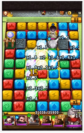 連線超過5個(gè)地磚,即可釋放強(qiáng)力連鎖技,殺傷力=普通傷害×3~覆蓋范圍顯示在棋盤上,不同武將、武器都有不同威力的連鎖技,連線數(shù)達(dá)到5、8、12,會(huì)有神秘技能效果(☆▽☆)。