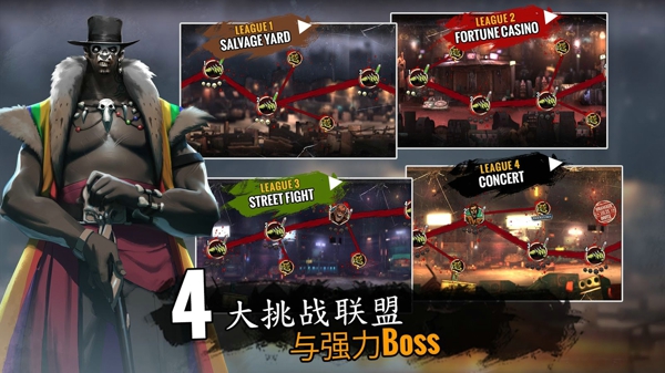 穿越四個激烈的戰(zhàn)斗聯(lián)盟,打敗強大的僵尸老大,然后成為終極冠軍。