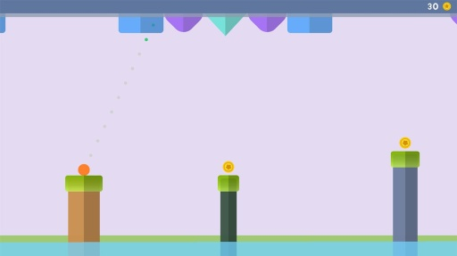 玩家只需調(diào)整小球發(fā)射的角度,通過墻壁反彈掉落至下一個(gè)平臺(tái),依次前進(jìn)。一旦小球沒有落在平臺(tái)上,則游戲結(jié)束,結(jié)算分?jǐn)?shù),獲得的金幣越多則分?jǐn)?shù)越高。