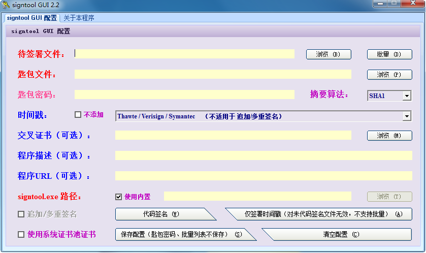 特此開發(fā)了signtool GUI,兩款軟件對比如下: