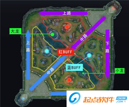 3. 開(kāi)局30S后,野區(qū)將刷出中立生物。包括蒼藍(lán)石像、緋紅石像、大小龍。擊殺可獲得增強(qiáng)我方實(shí)力的強(qiáng)力buff、經(jīng)驗(yàn)及金錢(qián)。