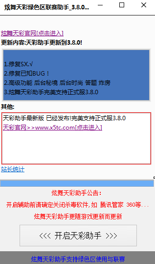 炫舞天彩助手是炫舞游戲中一款輔助工具,炫舞助手最新版擁有全P、練習(xí)轉(zhuǎn)轉(zhuǎn)、高分增強(qiáng)、團(tuán)隊(duì)平刷等等強(qiáng)大的輔助功能,并且小巧綠色,可以幫助玩家在游戲中超強(qiáng)發(fā)揮。