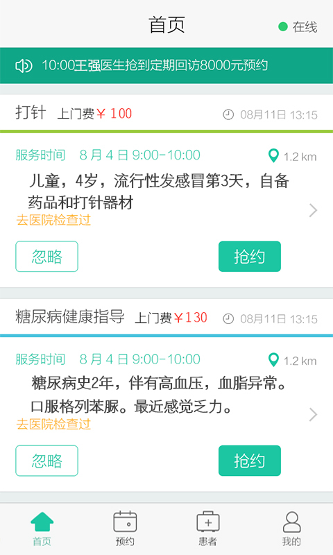專業(yè)認(rèn)證的注冊(cè)護(hù)士,為附近患者提供上門打針或輸液服務(wù)!
