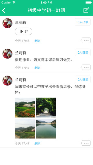 內(nèi)容形式多樣有趣,教師端應(yīng)用主要包括布置作業(yè)、發(fā)送通知、發(fā)放成績(jī)、課程表、好友聊天等等;相對(duì)應(yīng)的,家長(zhǎng)端應(yīng)用主要包括實(shí)時(shí)接收老師發(fā)的通知、作業(yè)、日常表現(xiàn),查看孩子課程表,及時(shí)準(zhǔn)備要上的課程等。