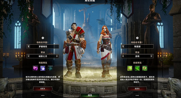 《神界:原罪》為玩家設(shè)計(jì)了十一種不同的職業(yè),這些職業(yè)各具特色、各具獨(dú)特技能,玩家可以選擇自己感興趣的角色進(jìn)行游戲,同時(shí)在游戲的開始還可以自定這些角色的初始屬性。暗刃:這個(gè)強(qiáng)大刺客有匕首和魔法作為武器,任何曾經(jīng)目睹過他的人都被嚇得肝膽俱裂。其天賦為“游記”和“水蛭”,初始技能為流血、壓顱器、刀鋒邊緣。