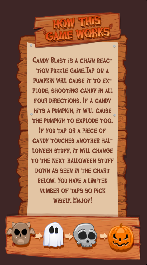 《南瓜爆破萬圣節(jié)版 Candy Blast Halloween Edition》是一款益智游戲。雖然界面看起來像是三消游戲,但其實(shí)玩法跟《十滴水》是一樣的,點(diǎn)擊一個(gè)圖標(biāo),會爆裂向四個(gè)方向飛濺,然后被糖果濺射到的也會爆破。感興趣的玩家可以試試。