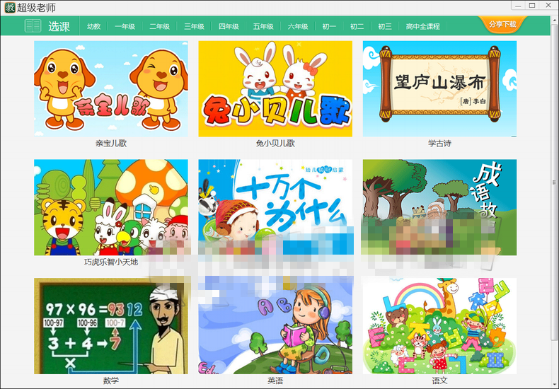 來自黃岡中學、北京四中等國內(nèi)頂級名校超級老師的精彩講解,生動有趣,學生更易掌握要點。從幼兒園到高中課程全科目覆蓋.