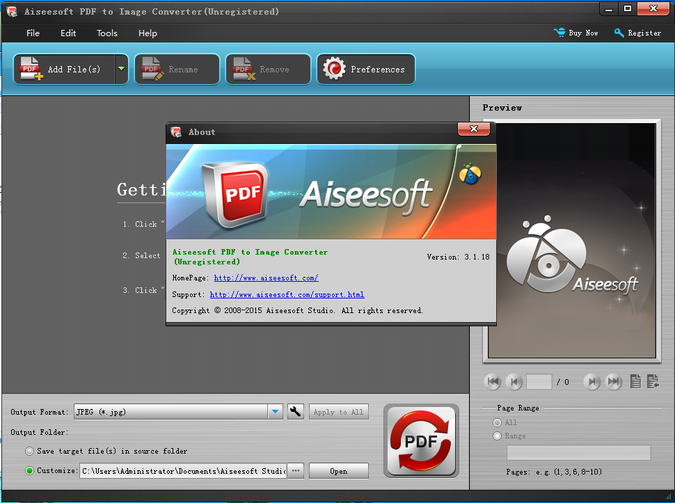 之前轉(zhuǎn)換PDF,PDFAiseesoft的圖像轉(zhuǎn)換器可以幫助您選擇的頁面范圍選擇所有頁面。