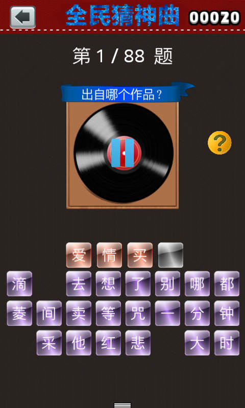 全民猜神曲是一款休閑手機(jī)游戲,無(wú)論是占據(jù)各大首頁(yè)的火熱神曲,還是搞笑神器的耍寶神器,游戲都將收錄其中作為關(guān)卡,玩家要做的就是仔細(xì)傾聽(tīng)?zhēng)酌腌姷母枨?,然后在組合下方的字成正確的歌曲名過(guò)關(guān),想看看自己是不是娛樂(lè)達(dá)人,一猜便知。