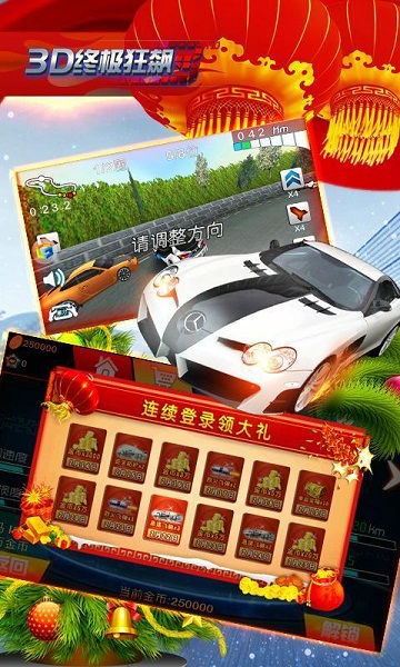 《3D終極狂飆3》是一款華麗的賽車競速游戲!延續(xù)超小的體積和炫酷的3D引擎!加入360度的3D真實名車體驗極度瘋狂!融合了流行而火爆的改裝車競速文化,滿足玩家個性需求!真實的漂移、加速特效和動態(tài)模糊,逼真的畫質(zhì),讓您身臨其境標準、挑戰(zhàn)、生存等賽車模式提升,更加真實和透徹的感受。