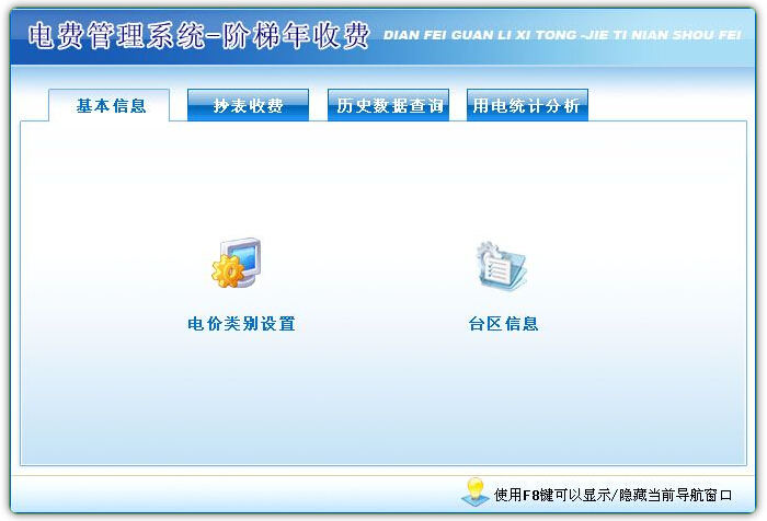 1、基本信息(基本信息和電表查詢(按臺(tái)區(qū)查詢、按用戶查詢));2、抄表收費(fèi)管理(設(shè)置年月、抄表導(dǎo)入、抄表錄入、收費(fèi)錄入、未交費(fèi)用戶查詢、期間收票員合計(jì)、臺(tái)區(qū)電費(fèi)累計(jì)、期間收費(fèi)統(tǒng)計(jì));