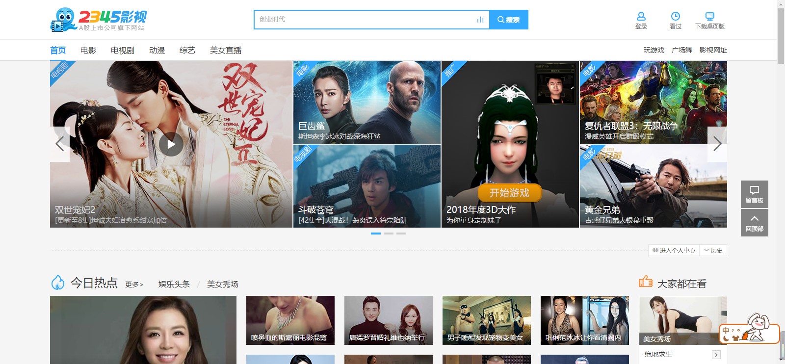 1、軟件安裝成功以后,電腦桌面上會(huì)出現(xiàn)一個(gè)快捷方式,那么我們雙擊打開它,就可以進(jìn)入2345影視大全了,如下圖所示: