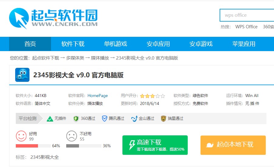 1、在起點(diǎn)軟件園本頁面提供的鏈接進(jìn)行下載,點(diǎn)擊“起點(diǎn)本地下載”,下載2345影視大全軟件包。