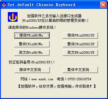 中國獨(dú)創(chuàng)的EXE外掛式輸入法,可以在中英文繁簡(jiǎn)體Win95、Win98、WinNT、Win2000、WinXP、2003及外掛中文平臺(tái)中使用。即是說只要能看到中文的系統(tǒng),都可以用萬能五筆輸入漢字,和一般操作系統(tǒng)的內(nèi)置輸入法往往有所不同。如在一些特殊的軟件或操作系統(tǒng)中,用其他的內(nèi)置式輸入法都無法上屏或有亂碼,而用萬能五筆卻能正常上屏漢字。