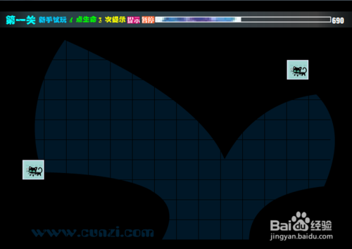 第一關(guān)是試玩的,上方的時(shí)間條到底了,如果方塊還沒有清除游戲就結(jié)束了。