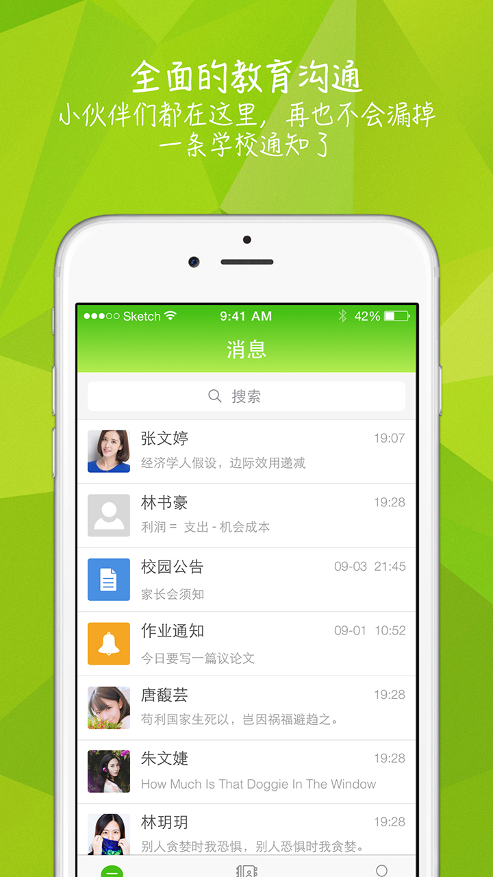 全面的教育溝通:老師和小伙伴們都在這里,干凈安全的交流環(huán)境,再也不會(huì)漏掉學(xué)校通知了;