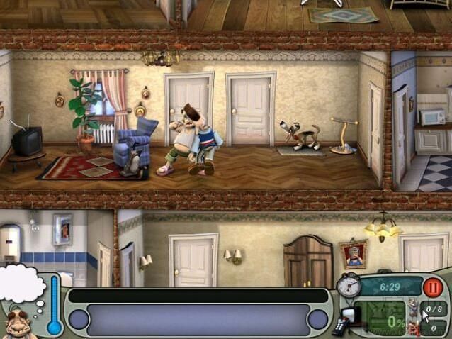 物品:石灰粉(右中),辣椒(右下),雞腿(左下),食人魚的牙齒(左下),烈酒(左下),玻璃瓶(左上,拿到后立刻到左下的螞蟻處裝螞蟻),花(右上),石像之手(右上)流程:首先等老頭離開左上,把石灰粉倒在水槽里,把花給牛吃,就放在右邊槽里就好-〉到右中,先在老頭的食物和飲料里放辣椒和烈酒,再給食肉花吃雞腿,然后給它裝上食人魚的牙齒(好毒辣啊。。。)-〉這時如果老母在右下的話就躲在石像里,等她上到右上去的話就馬上到右下,把裝滿螞蟻的玻璃瓶放在船里-〉到左下(這時因為先前的馬蜂窩掉了下來,可以先去撿,在左上),在玩具馬上裝上蜂窩,用石像之手把木馬的開關(guān)弄松-〉到左上看好戲