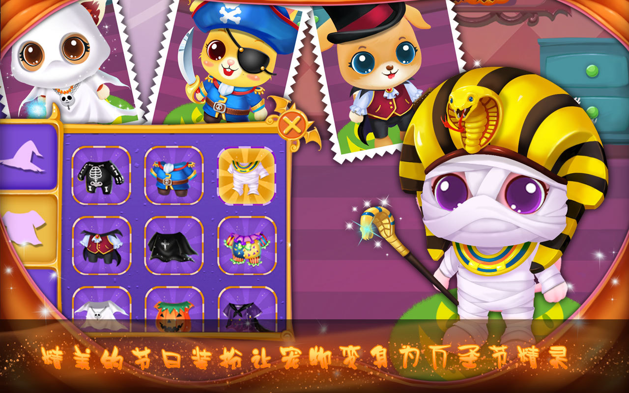 寵物萬圣狂歡夜是一款十分有趣的萬圣節(jié)休閑游戲,這款游戲以萌系寵物為主題,玩家可以隨意打扮自己的寵物,然后帶著它去參與萬圣節(jié)大會的各種小游戲,體驗不一樣的休閑樂趣。