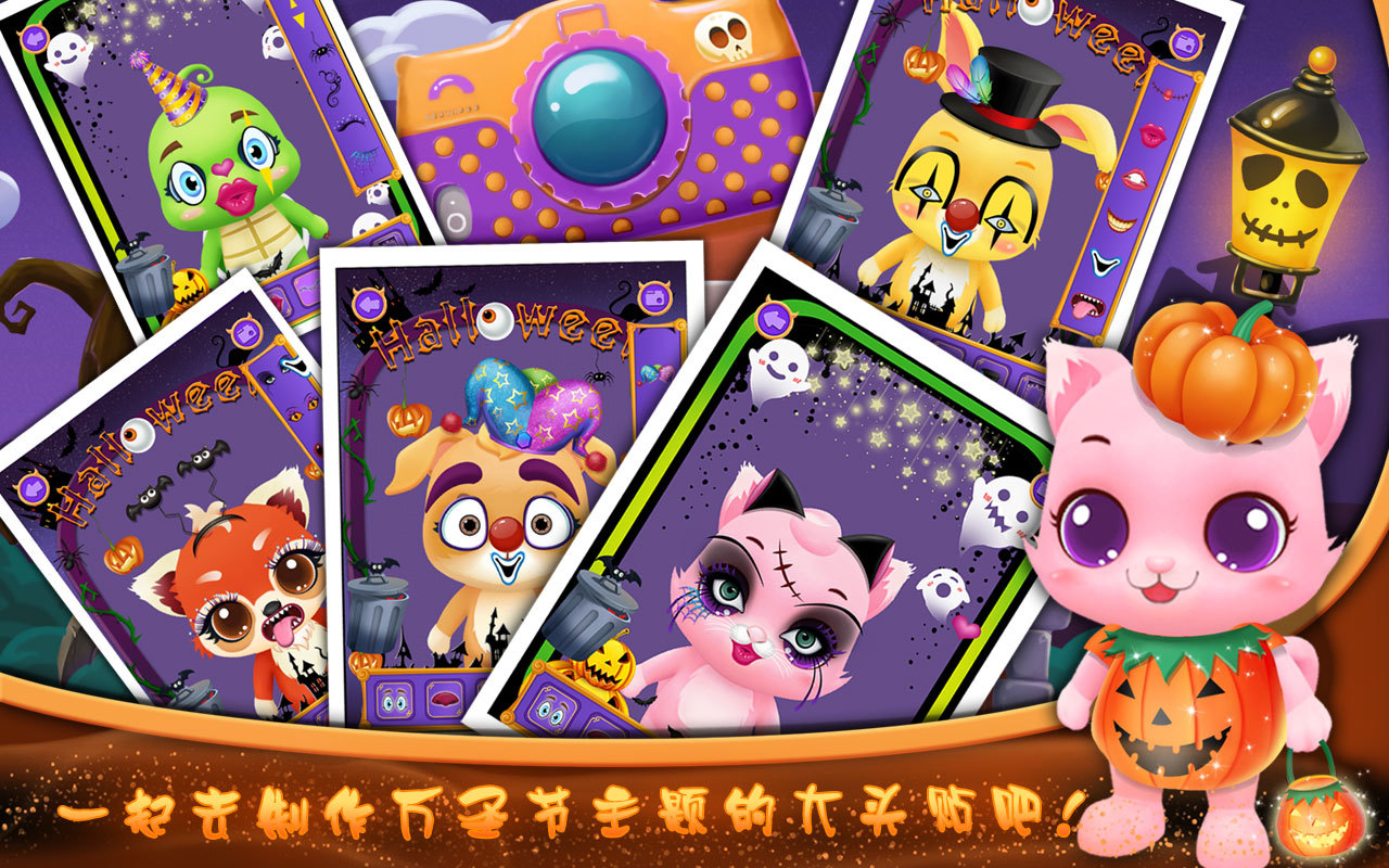 嘿,小伙伴們,Libii萌寵萬圣節(jié)開始啦!小猴、烏龜、浣熊等六只小動物誰才是你的最愛呢?趕緊帶上它一起加入這怪誕有趣的“寵物萬圣狂歡夜”吧!在這里你不僅可以將你的寵物裝扮成最耀眼的萬圣節(jié)精靈,還可以帶它參加一系列別開生面的小游戲哦。比如,制作南瓜燈、吹氣球、做恐怖蛋糕、涂鴉、拍大頭貼等等。