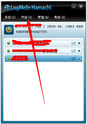 安裝完成后,打開(kāi)hamachi,點(diǎn)擊網(wǎng)絡(luò),選擇創(chuàng)建新網(wǎng)絡(luò)。