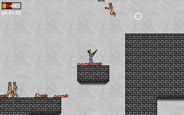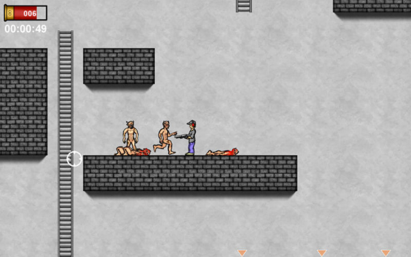 玩家可以使用自己的鼠標(biāo)瞄準(zhǔn),鼠標(biāo)左鍵使用獵槍,點(diǎn)擊鼠標(biāo)右鍵來執(zhí)行近戰(zhàn)攻擊和空格鍵跳躍的平臺(tái)和梯子。殺害積極的僵尸使用功能強(qiáng)大的獵槍無限彈藥和拳。此外,與你的彈藥,你的健康點(diǎn)不限。要小心,不要在太靠近的僵尸,因?yàn)樗鼈兛赡軙?huì)耗盡你的生活,只需幾個(gè)攻擊。