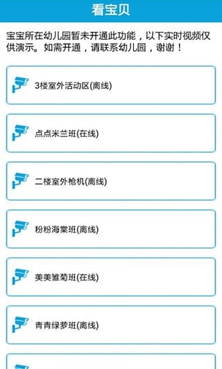 幼樂寶看寶寶模塊,結(jié)合幼兒園的監(jiān)控攝像頭,實現(xiàn)了讓家長們實時查看寶寶狀況的功能。讓幼兒園安全增加多一份保障。