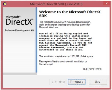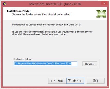 下載DirectX SDK,完成后雙擊安裝文件進(jìn)行安裝,按照提示進(jìn)行操作即可以完成安裝步驟。本文的安裝路徑設(shè)為D:\Program Files (x86)\Microsoft DirectX SDK (June 2010)