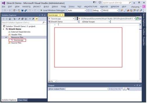 在VS2013的空白工程的源文件中添加一個(gè)空白的cpp文件,命名為source.cpp