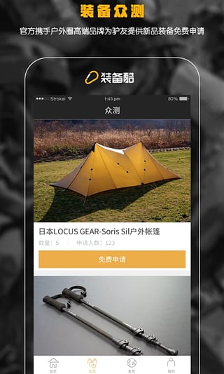 眾測:登山鞋,沖鋒衣,帳篷,睡袋,戶外背包,登山杖,越野跑鞋,頭燈,跑步,騎行,徒步,滑雪各類戶外旅行方式裝備等您免費(fèi)來拿。發(fā)現(xiàn):你可以在這里發(fā)帖子曬生活曬裝備,發(fā)現(xiàn)有價(jià)值的戶外線路,不懂的問題一問就知道答案。來裝備酷,發(fā)現(xiàn)最接地氣的戶外社區(qū),隨時(shí)隨地約伴找朋友。
