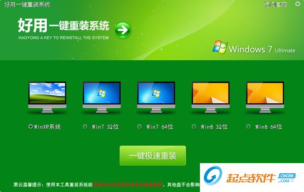 好用一鍵重裝系統(tǒng),是一款在線云一鍵裝系統(tǒng)工具,無需電腦基礎(chǔ)即可在線快速重裝系統(tǒng),全自動流程,傻瓜式一鍵自動安裝xp win7 win8,真正做到無人值守全自動電腦系統(tǒng)安裝。重裝系統(tǒng)只會刪除系統(tǒng)盤,不影響其他磁盤數(shù)據(jù)文件。【軟件特點(diǎn)】