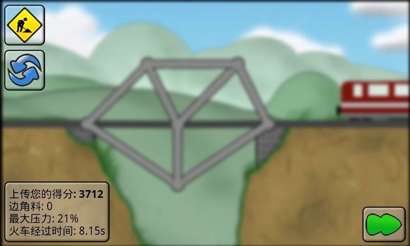 左上角的那個是通車按鈕,你感覺你的大橋已經(jīng)建成了,可以讓火車在上面跑著試試看。